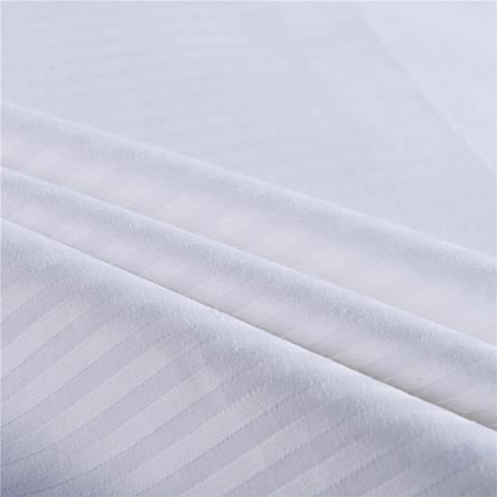 Cette parure de lit à rayures blanches 600 fils au pouce carré est en satin, doux et satiné, tissé avec plus de quatre fils en un seul. Le tissage standard, comme le Pocar, utilise un fil en surface et un fil en dessous. Ce tissage à quatre couches rapproche davantage de fils de la surface, créant une surface douce et chaude, idéale en toute saison.