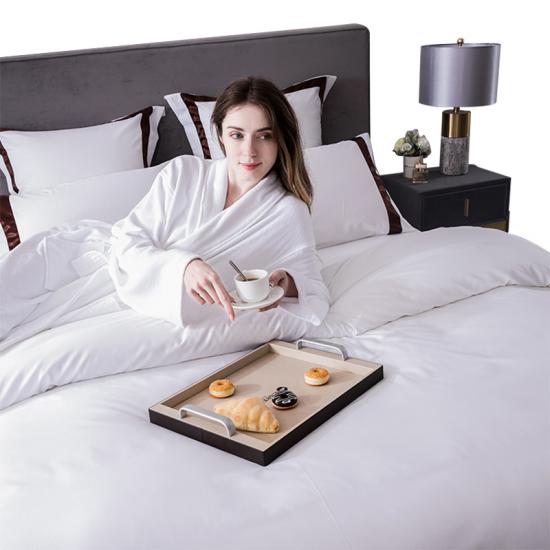 Nous fabriquons un couvre-lit blanc 800 fils au pouce carré. Chaque étape du processus est minutieusement réalisée. Grâce à un tissu de haute densité et de qualité supérieure, son rapport qualité-prix est optimal. Le style est élégant, gracieux et tendance. La mode se marie à la noblesse, révélant une harmonie raffinée et élégante.