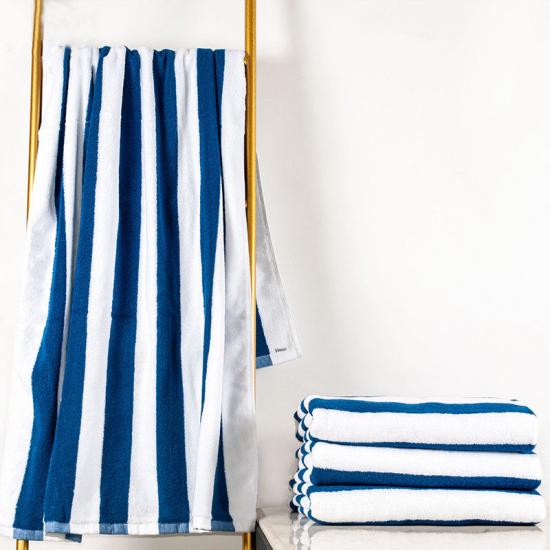 YRF produit un ensemble de serviettes de bain 100 % coton 650 g plus doux et plus durable d'un fabricant qui n'utilise aucun agent de blanchiment dans le processus de production, y compris l'ensemble de serviettes de bain 100 % coton à rayures bleues.