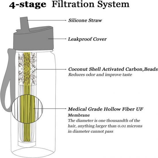 Purificateur d'eau d'urgence civile sans BPA, précision de filtration de 0,01 micronLiens amicaux :
