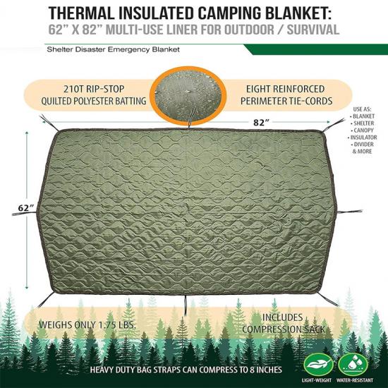 MILITAIRE: La doublure de poncho de pluie offre chaleur et protection contre la pluie lors des entraînements sur le terrain ou des missions. Elle peut également servir d'isolant pour hamac, d'oreiller, d'outil de transport, etc., ce qui la rend pratique à transporter et à utiliser pour les militaires.