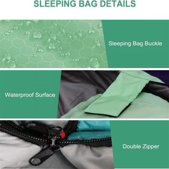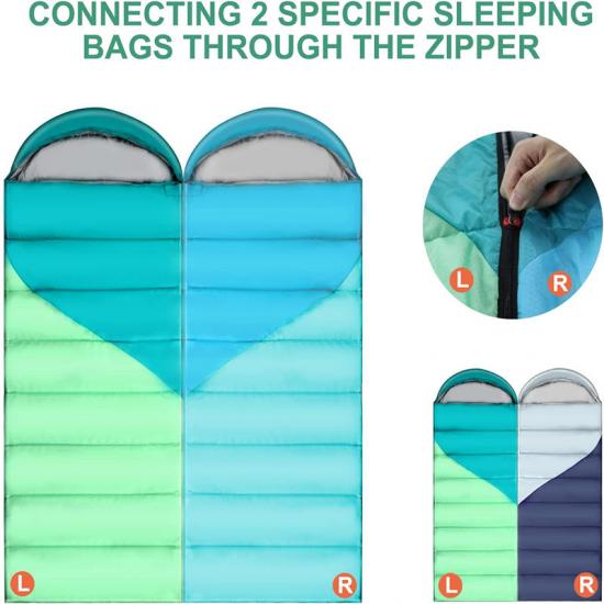 Ce sac de couchage chaud à épissure est doté de fermetures à glissière double face de haute qualité pour garantir qu'il ne s'accroche pas pendant l'utilisation, et les pieds sont dotés de fermetures à glissière qui ajustent la quantité d'air chaud ou froid qui entre ou sort du sac de couchage.