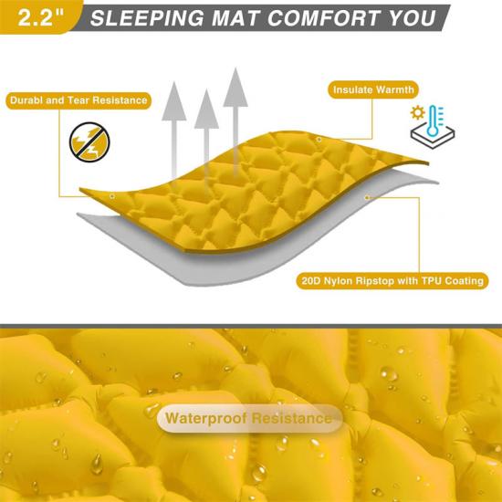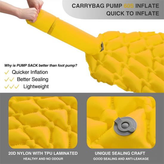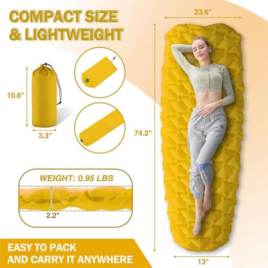 Matelas de couchage gonflable compact fabriqué en Chine Matériau : Notre matelas de couchage gonflable est fabriqué en rip-stop