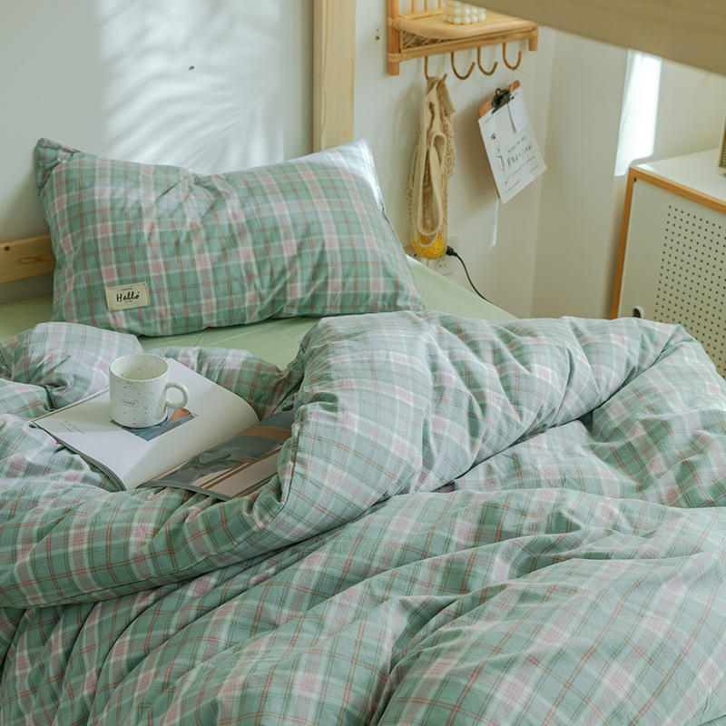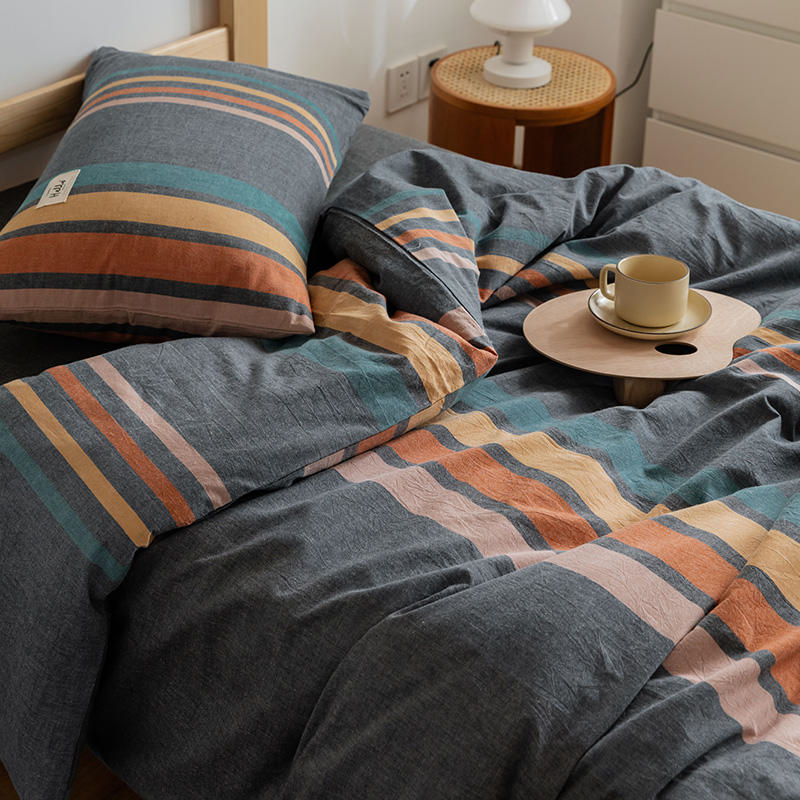 Ensemble de housse de couette en coton lavé doux et respirant disponible, ensembles de literie,● 3 PCS : 1 taie d'oreiller et un drap plat et un Couette d'été ,
