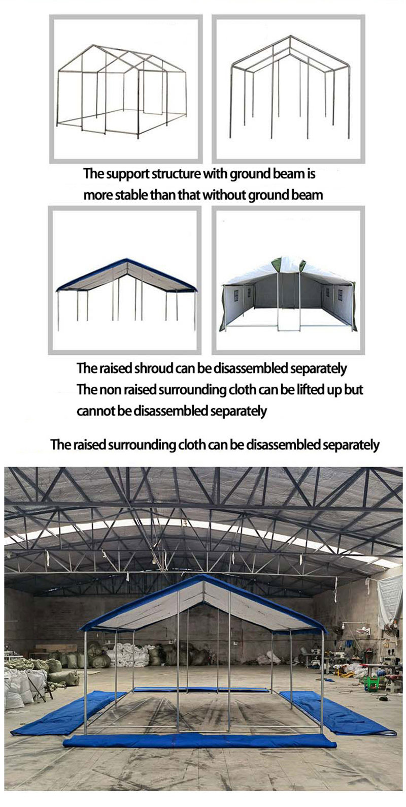 La tente d'urgence est un atout essentiel dans de nombreuses situations critiques. Lors des secours d'urgence, comme après un ouragan ou un tsunami, elle offre un abri immédiat et sûr aux personnes touchées. Les militaires comptent sur elle pour les camps de déploiement rapide lors de leurs missions. Les équipes médicales l'utilisent comme dispensaires de fortune pour les premiers secours et les traitements. Elle est également un élément clé des dons des Nations Unies, des réserves gouvernementales pour la préparation aux catastrophes et des opérations de la Croix-Rouge. Facile à assembler, cette tente permet une installation rapide, même dans les situations les plus urgentes. De plus, elle est disponible dans une large gamme de couleurs, vous permettant de choisir celle qui correspond à vos besoins spécifiques. Sa fabrication de haute qualité garantit une durabilité et des performances durables.