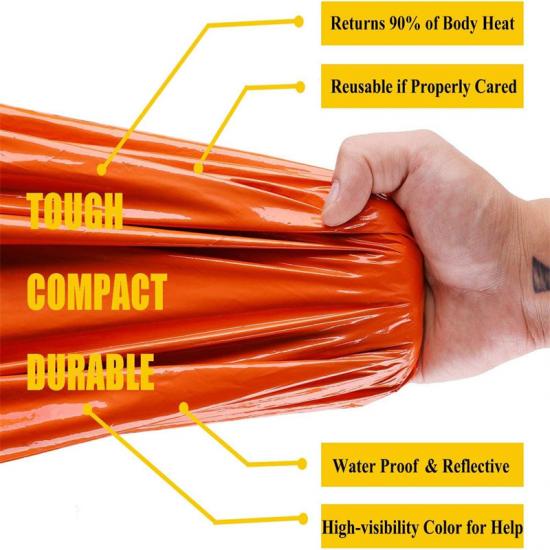 Fabriqué à partir d'un matériau PE ultra-léger pour une chaleur 24 heures sur 24 et dans une couleur qui permet aux sauveteurs de le trouver facilement, c'est un outil de survie essentiel.