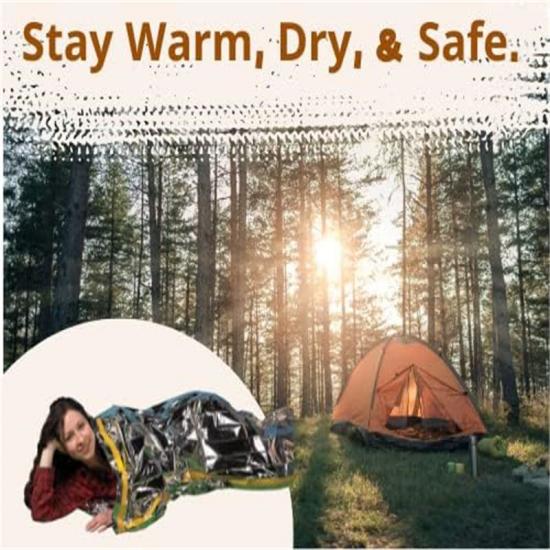 Fabriqué à partir d'un film polyester aluminisé de haute qualité, le sac de couchage isolé aide à conserver jusqu'à 90 % de la chaleur de votre corps en cas d'urgence.