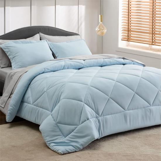 Notre parure de lit d'urgence 7 pièces, fabriquée en Chine, comprend : 1 couette 260 x 240 cm, 1 drap-housse 210 x 180 x 35 cm, 1 drap plat 270 x 260 cm, 2 taies d'oreiller 50 x 100 cm et 2 taies d'oreiller 50 x 90 cm. Ce drap de lit léger est fabriqué en microfibre de haute qualité, traité par un procédé de matelassage professionnel, pour vous apporter chaleur et confort.