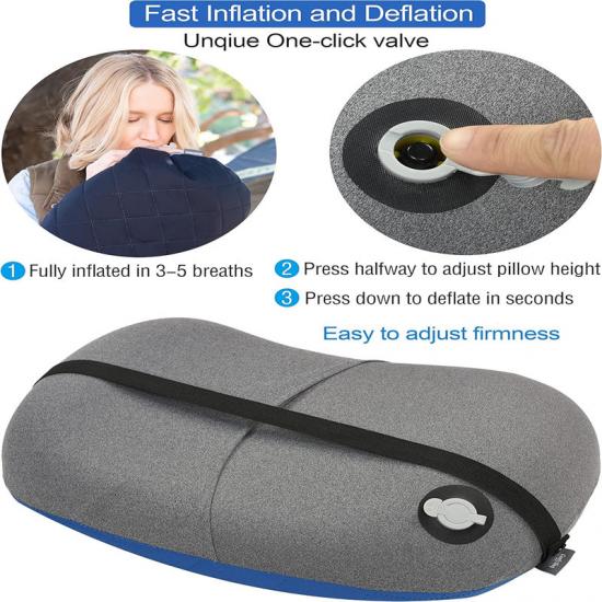 La valve d'admission d'air de l'oreiller gonflable compact Earthquake Disaster est équipée d'un dispositif de retenue à ressort qui se ferme automatiquement une fois gonflé. Il suffit d'appuyer sur un bouton pour le gonfler en 3 à 5 respirations. Appuyez à nouveau sur le bouton pour un dégonflage rapide en quelques secondes. Une légère pression sur le bouton libère l'air lentement jusqu'au niveau de fermeté ou de souplesse souhaité, permettant ainsi à l'utilisateur d'ajuster facilement son confort.