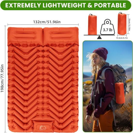 A : Le matelas de couchage gonflable portable et confortable mesure 78 x 52 x 3,5 pouces et ne pèse que 3,7 lb.
