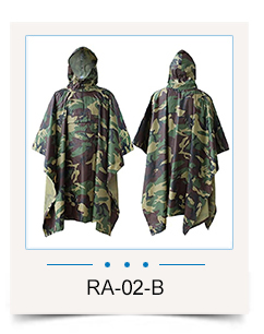 La doublure de poncho imperméable offre une protection sèche contre les intempéries dans les situations d'urgence en cas de catastrophe, et pour ceux qui doivent se trouver dans une situation de survie d'urgence, elle offre une variété de moyens de les protéger de l'environnement extérieur et d'assurer le confort. Dans l'armée, le poncho polyvalent peut être utilisé comme équipement pour les opérations tactiques secrètes, réduisant ainsi les frottements et les bruits violents.