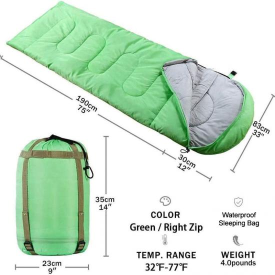 R : La taille standard est de 185 cm × 75 cm, la grande taille de 200 cm × 85 cm. L'espace intérieur est généreux et convient à toutes les morphologies. La conception trapézoïdale spéciale offre une plus grande liberté de mouvement pour les épaules et les jambes.