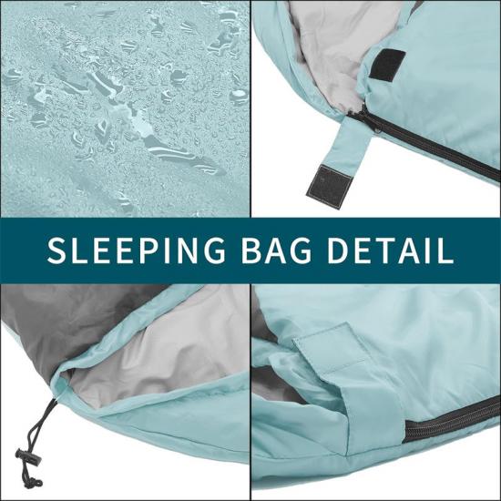 La couche intérieure du sac de couchage est en polyester doux, confortable, respirant et à rebond rapide, ce qui le rend moelleux et chaud.