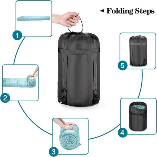 R : Le sac de couchage peut être rétréci en un sac de rangement compact en quelques secondes.
