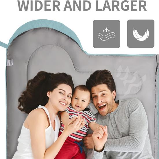 Les fermetures éclair droite et gauche du sac de couchage respirant peuvent être relevées simultanément, ce qui permet de le transformer en sac de couchage double. De plus, le fond du sac de couchage en polyester de 2 kg est ouvrable, aéré et non étouffant, et permet de le déplacer facilement pour s'adapter à différentes situations.