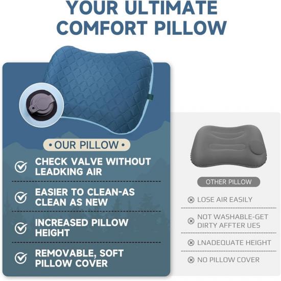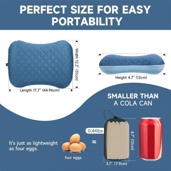 L'airbag interne de l'oreiller gonflable pratique de secours est recouvert d'un tissu élastique en polyester très résistant pour éviter efficacement les fuites d'air. La bande élastique amovible assure une stabilité optimale pendant l'utilisation, offrant ainsi un soutien optimal.