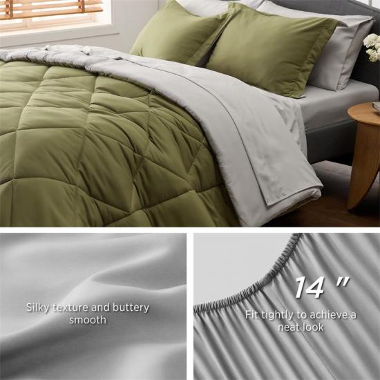 L'un des points forts de ce drap de lit d'urgence abordable est sa conception double face. Vous pouvez facilement retourner la couette et le couvre-lit pour changer de style et de couleur selon vos préférences et besoins. La taie d'oreiller enveloppe est non seulement élégante et généreuse, mais assure également la sécurité de l'oreiller. Le matelassage en losanges empêche efficacement le garnissage de la couette de bouger, pour un sommeil plus sûr.
