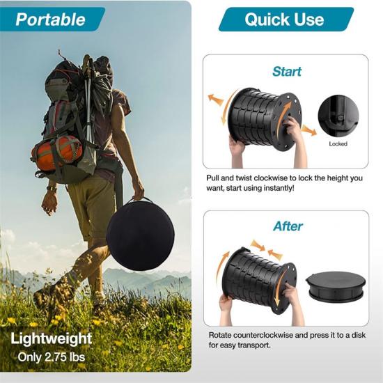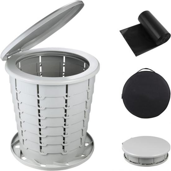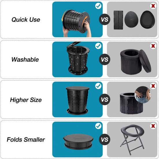 Ces toilettes portables d'urgence compactes présentent également une conception multifonctionnelle qui lui permet d'être utilisée comme toilettes de campagne, tabouret pliant, boîte de rangement, table d'appoint ou poubelle en basculant librement entre les couvercles fonctionnels. Cette polyvalence le rend extrêmement utile dans différents scénarios.