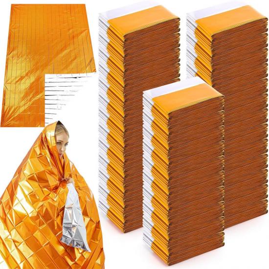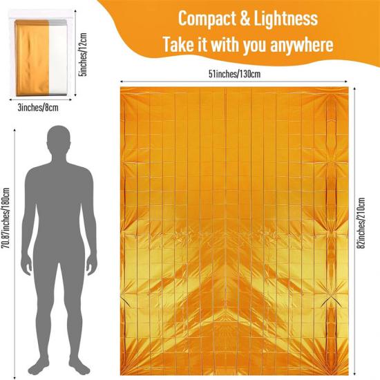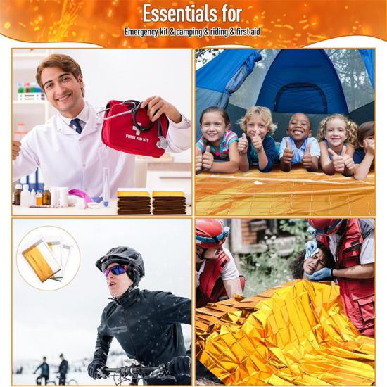 Facile à transporter : Chaque Produit d'urgence La couverture en film PET aluminisé est pliée, emballée et scellée individuellement dans un emballage compact d'environ 12,7 x 7,6 cm et pèse environ 58 g. Ce format compact permet de la glisser facilement dans un sac à dos ou une poche, idéale pour un déploiement rapide en cas d'urgence. Ces couvertures imperméables et coupe-vent sont également réutilisables, durables et adaptées à une utilisation à long terme.