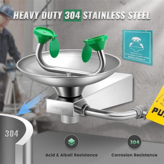 Notre lave-yeux de douche de bassin pour préparation aux urgences est fabriqué à partir de matériaux de haute qualité pour assurer la durabilité et la stabilité du lave-yeux de douche. Le matériau principal est un bassin en plastique ABS épaissi, combiné à de l'acier inoxydable et à un revêtement anticorrosion, ce qui lui permet de maintenir ses performances même dans l'environnement difficile des acides forts et des alcalis. La buse de lavage des yeux est spécialement conçue avec 81 trous de sortie pour garantir que la colonne d'eau est concentrée et sans éclaboussures. Avec un diamètre de bassin de 250 mm, ce grand bassin est conçu pour recueillir l'eau plus efficacement et garder les sols propres.
