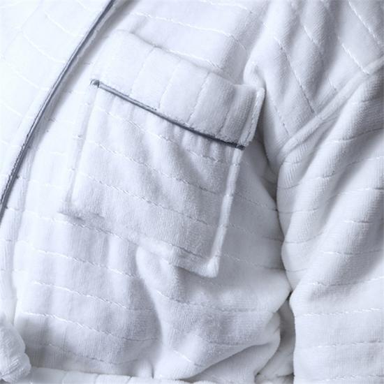 Tricot rayé Tissu en velours Le peignoir est facile à laver en machine à l'eau tiède. Un tissu doux et de qualité sèche rapidement.