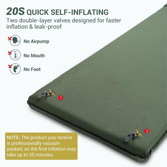 Notre mousse haute densité possède des propriétés de haute résilience qui permettent à ce matelas de couchage de se gonfler en moins de 20 secondes.