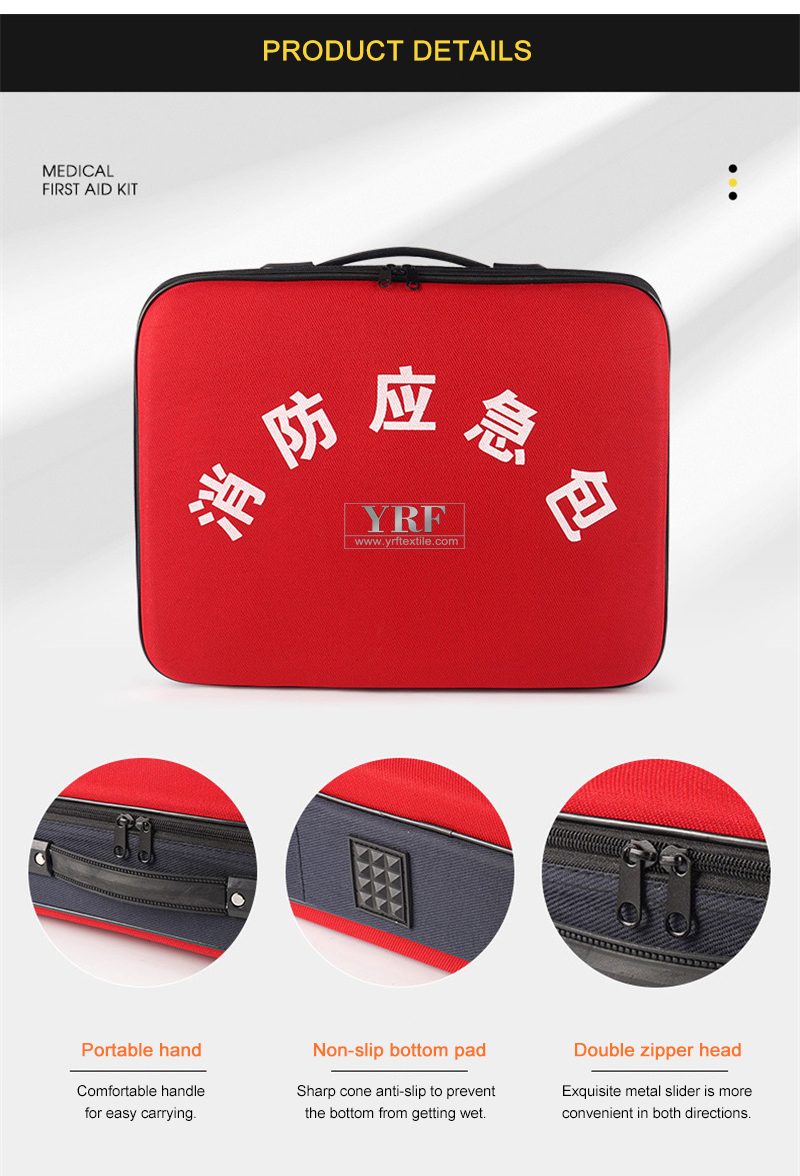 La trousse de premiers secours est un outil essentiel dans de nombreuses situations critiques. Idéale pour les opérations de secours d'urgence, l'usage militaire, les interventions médicales, les dons de l'ONU, les stocks gouvernementaux et les activités de la Croix-Rouge, elle est disponible en plusieurs couleurs et tailles pour répondre à divers besoins. Cette trousse de premiers secours pour catastrophes est remplie de fournitures médicales de première qualité, permettant de répondre efficacement à diverses situations d'urgence. De conception durable, elle résiste aux conditions difficiles. Légère et portable, elle est facile à transporter et accessible rapidement. Soyez bien préparé à toute situation imprévue grâce à notre exceptionnelle trousse d'urgence incendie. |