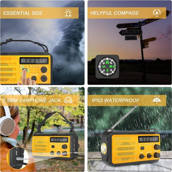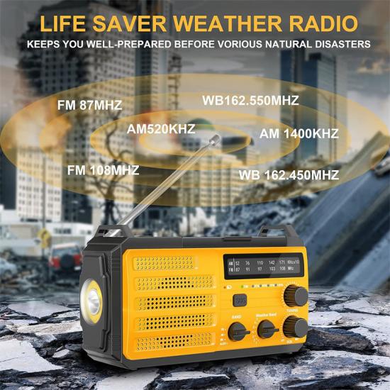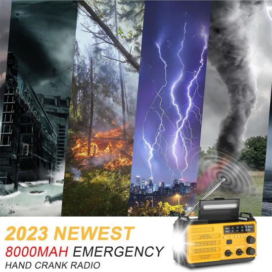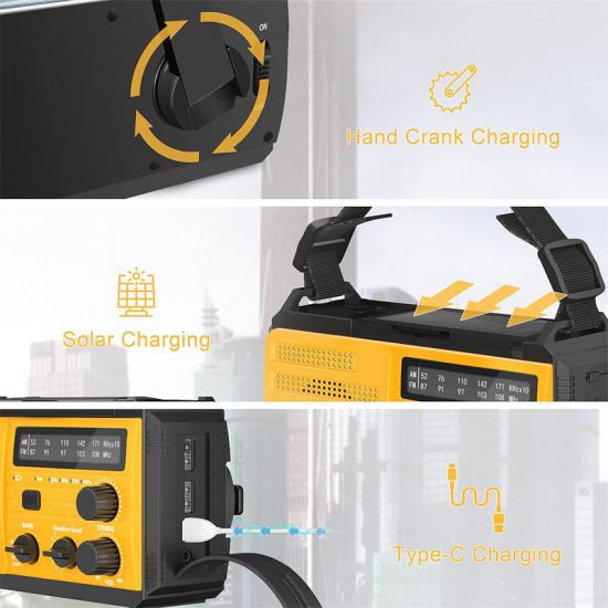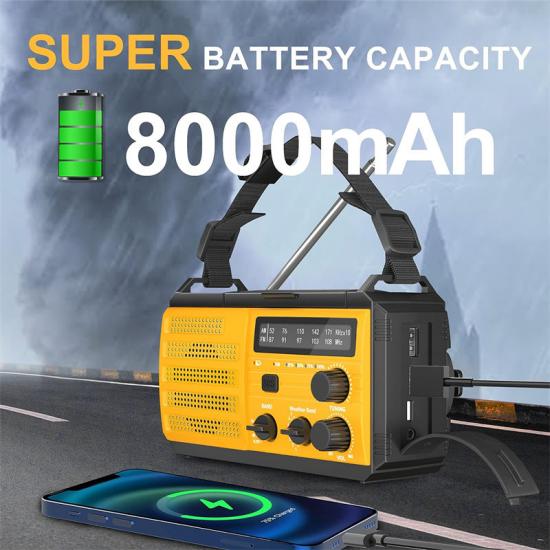 Radio de bienfaisance portable avec batterie de 8 000 mAh et diffusions météo Radio résistante aux chocs et aux inondations, légère et multifonctionnelle