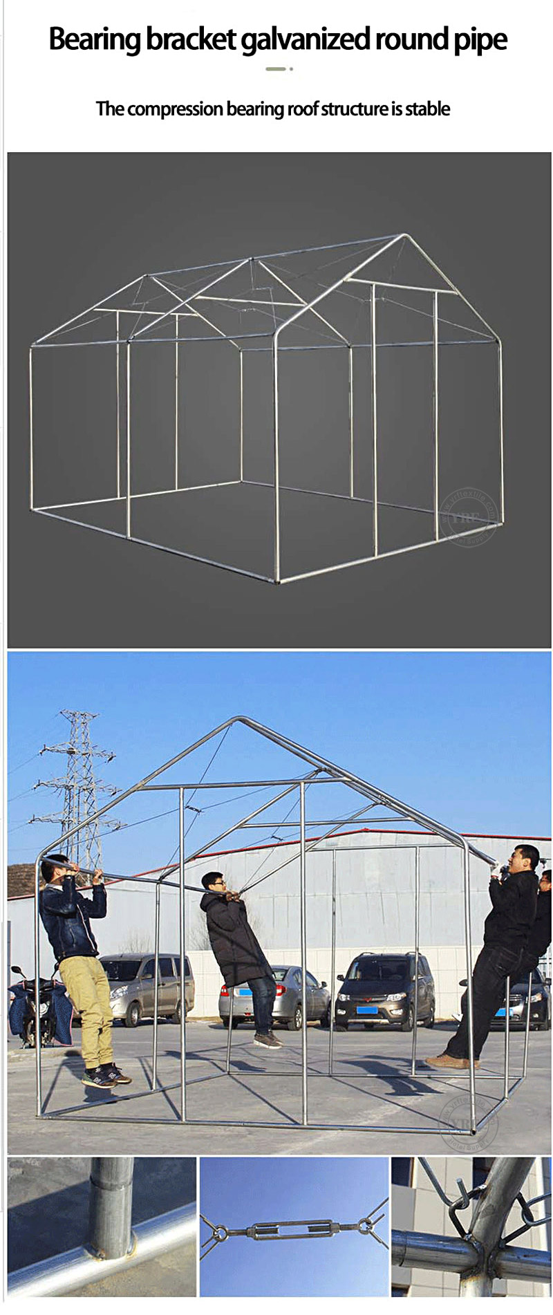 1. Matériau du cadre : cadre en acier galvanisé à chaud, poteau en acier