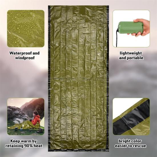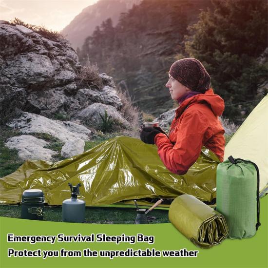 Matériaux de haute qualité : Sac de couchage de survie anti-déchirure. Fabriqué à partir de matériaux résistants à l'usure et durables, il résistera à l'épreuve du temps. Son revêtement anti-déchirure et anti-perforation améliore sa durabilité et lui permet de résister à divers environnements difficiles.