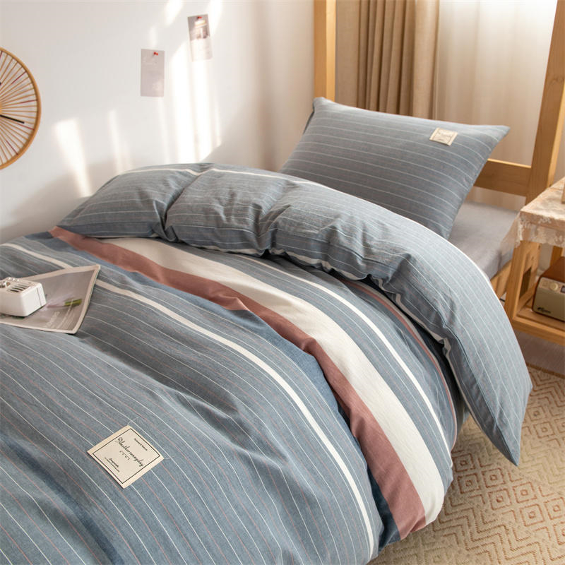 Housse de couette à rayures de 3 cm 100 % coton, confectionnée en polyester uni. Les lignes sont régulières.