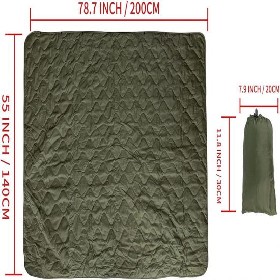 MATÉRIEL: La couverture d'urgence polyvalente est fabriquée en ripstop 210T et remplie de coton pulvérisé pour empêcher l'eau de pénétrer dans le compartiment du poncho pour vous garder au chaud et confortable.