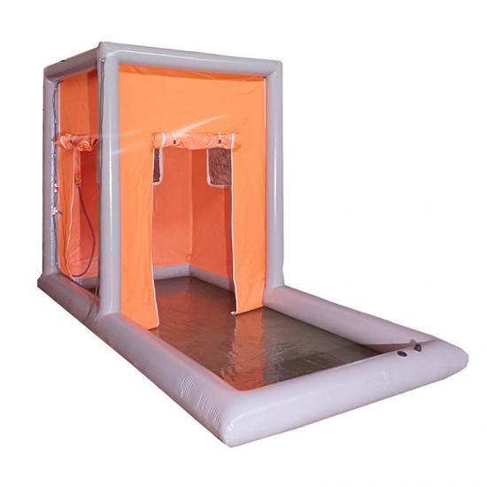 L'aspect orange est accrocheur et facile à identifier dans les environnements complexes, facilitant le positionnement et le déploiement rapides des secours. De plus, l'orange transmet un signal d'avertissement, rappelant aux personnes à proximité de prêter attention à la zone de décontamination, soulignant ainsi la fonction d'identification de la tente gonflable orange de décontamination par brouillard humide.