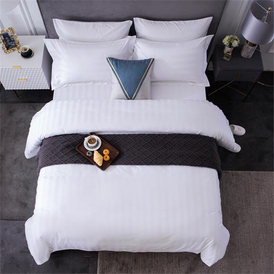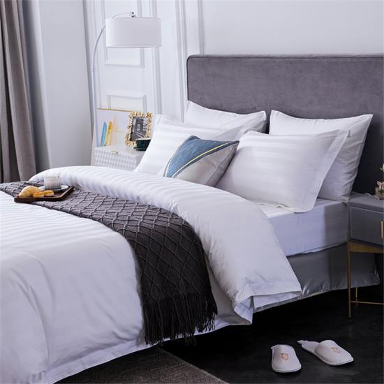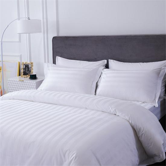 Parure de lit double king size à rayures blanches en coton et polyester 600 fils de qualité |
