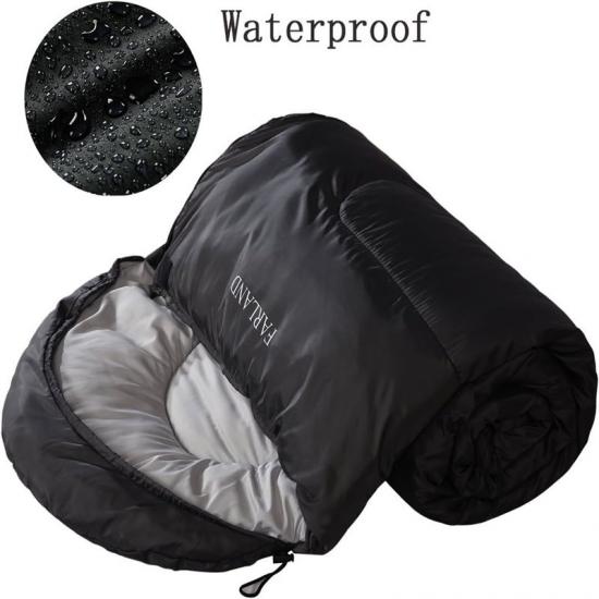 Notre sac de couchage doux et chaud convient aux temps frais/froids avec une plage de température de 20-62℉/-7-17℃. Le sac de couchage a une conception imperméable et coupe-vent qui vous garde au chaud et vous protège de l'humidité même dans des conditions météorologiques extrêmes. La technologie de double remplissage rend cela possible et vous pouvez dormir confortablement tout en portant un sac de couchage avec une conception zippée coupe-vent et imperméable. Le sac de couchage reste chaud de haut en bas, avec un cordon de serrage réglable et une capuche qui s'enroule autour de la tête pour plus de chaleur. Une fois que vous avez fini de l'utiliser, vous pouvez facilement le ranger dans le sac organisateur, ce qui le rend très pratique à ranger et à transporter.
