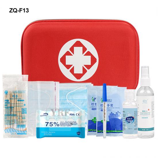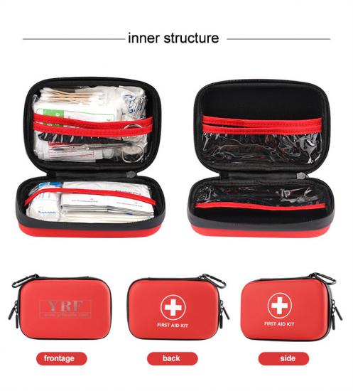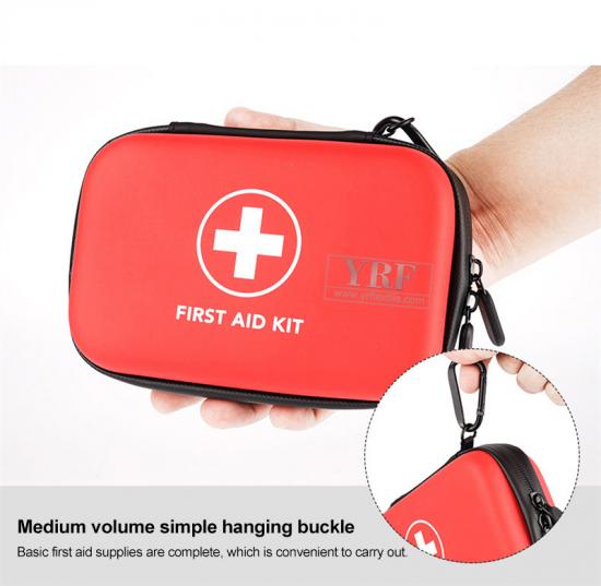 Comprimés d'alcool * 10, comprimés anti-démangeaisons * 10, garrot * 1, épingle * 1, bandage PBT * 1, ciseaux * 1, coton-tige * 10, ruban adhésif * 1, compresse oculaire * 2, compresse de gaze stérile * 4, manuel d'utilisation * 1, pince à épiler * 1, bandage triangulaire * 1, comprimés d'iodophore * 10, bandage imperméable * 20, emballage EVA * 1