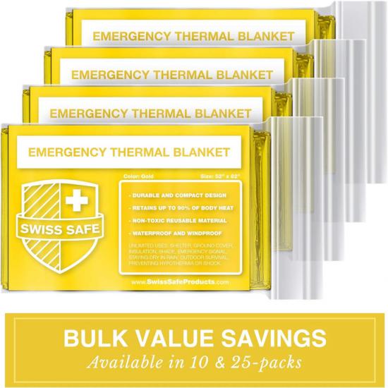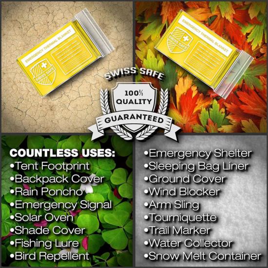 R : Cette couverture d'urgence de haute qualité, à isolation thermique double face et aluminisée, est idéale pour les situations d'urgence. Elle bloque complètement la pluie, la neige et l'humidité, prévenant ainsi l'hypothermie et les chocs en cas de conditions météorologiques extrêmes. Elle peut également servir de revêtement de sol, de doublure de sac de couchage ou de matériel de secours.