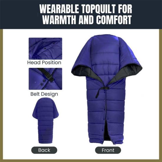 Le sac de couchage léger Equipment peut être utilisé comme un poncho léger et chaud portable et comme couche extérieure isolante supplémentaire lors du repos près du camp ou dans la nature froide de l'hiver.