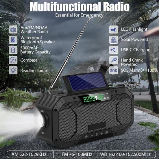 Radio portable rechargeable/charge solaire pour la préparation aux situations d'urgence Radio résistante aux chocs et aux inondations, légère et multifonctionnelle
