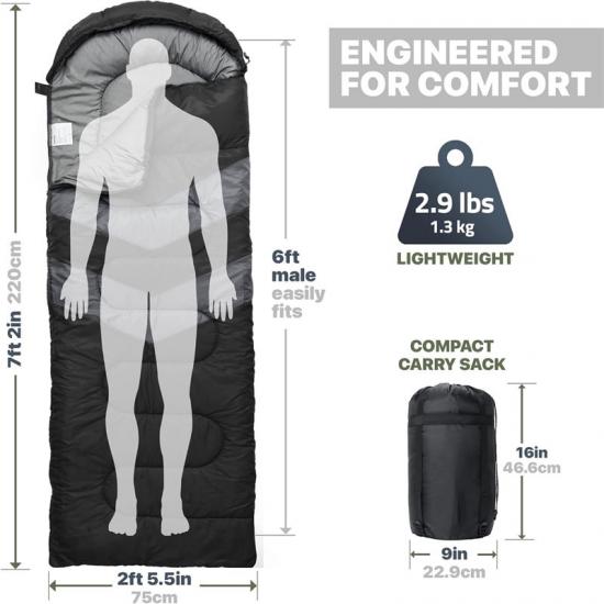RESSENTEZ LA DIFFÉRENCE - YRF Super Confortable Sac de couchage avec capuche Conçus pour vous garantir une nuit de sommeil réparatrice après une journée fatigante de trekking, de randonnée, de voyage ou toute autre exploration. Le système anti-enroulement permet un pliage rapide et facile. Reliez-les par deux pour doubler l'espace.