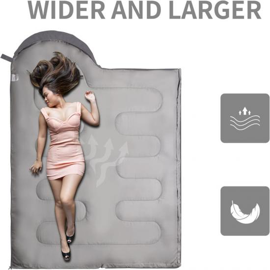 Notre sac de couchage est conçu avec des fermetures à glissière sur les jambes, ce qui permet aux utilisateurs d'étirer leurs pieds, et le sac de couchage en microfibre peut offrir suffisamment de confort en cas d'urgence. En même temps, il reste chaud et confortable une fois zippé.