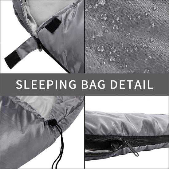 Les sacs de couchage 290T sont fabriqués dans un matériau léger, facile à nettoyer et à séchage rapide. Le revêtement de surface du sac de couchage en tissu polyester Ripstop est un composé moléculaire sec qui est imperméable, respirant et résistant à l'humidité, ce qui lui permet de bien résister par temps pluvieux ou poussiéreux.