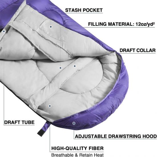 Ce sac de couchage dispose d'une fonction de combinaison et de démontage libre qui lui permet d'être ajusté pour différentes utilisations.