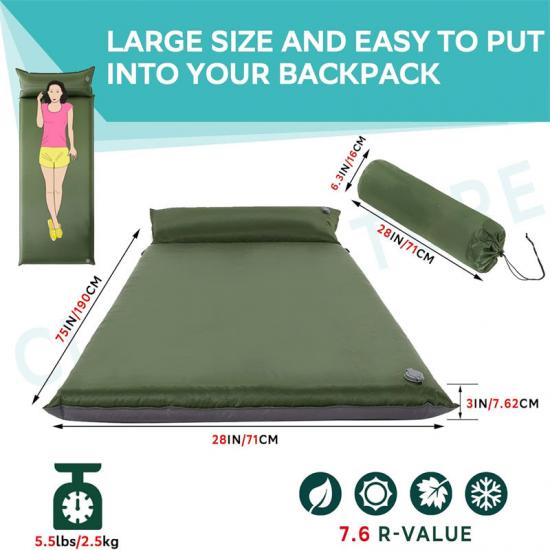 Nous vous recommandons de gonfler manuellement le matelas de couchage lors de la première utilisation pour activer la mousse à mémoire de forme et la gonfler complètement.