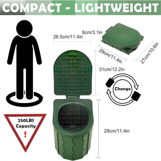 Ces toilettes légères avec sacs remplaçables sont bien plus qu'un simple WC : elles peuvent également être utilisées de manière multifonctionnelle comme rangement et toilettes, poubelle, petit tabouret, boîte de rangement, et bien plus encore. Grâce à leur construction robuste, elles sont très stables, même lorsqu'une personne de moins de 90 kg s'y assoit. Pour une pause ou pour ranger vos affaires, elles sont là pour vous.
