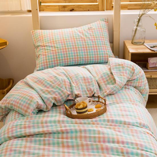 Ensemble de housse de couette en coton lavé doux et respirant disponible, ensembles de literie,● 3 PCS : 1 taie d'oreiller et un drap plat ( Drap-housse ) et une housse de couette,