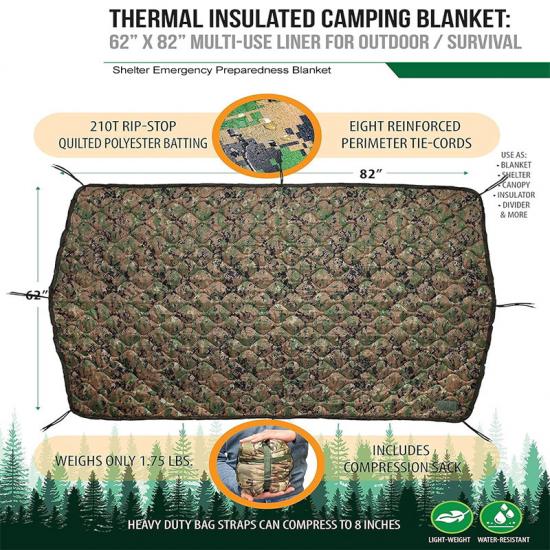 R : Il peut être utilisé à diverses fins, notamment comme tentes de survie temporaires, auvents, isolation de hamac, oreillers, cloisons de tente, écrans de confidentialité, outils de transport d'urgence, secours en cas de catastrophe, abris cachés, sacs à main de transport, sacs de couchage ou isolation de tente, etc.