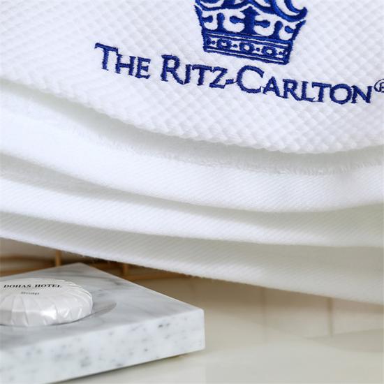 YRF produit des serviettes de bain d'hôtel 100 % coton avec logo personnalisé plus douces et plus durables auprès d'un fabricant qui n'utilise aucun agent de blanchiment dans le processus de production, y compris des serviettes de bain d'hôtel 100 % coton 900 g/m².